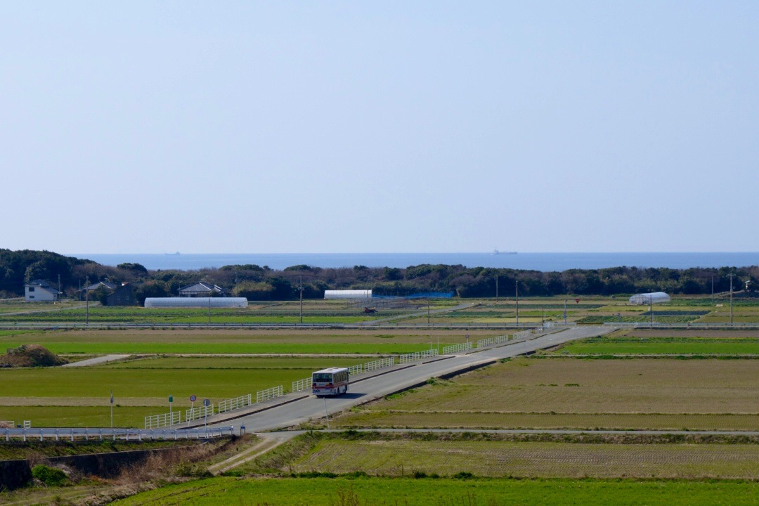 かつては塩田もあったという津屋崎・勝浦の田園地帯を、その先に玄界灘を臨みながら走っていく。