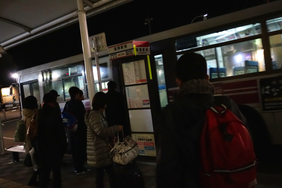 混んだ列車を降りてちょっとだけ乗る帰りのバス。
