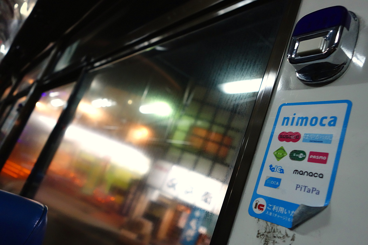 3基の出口改札機に群がって散って、エスカレーターを降りたら西鉄バスのバス停。