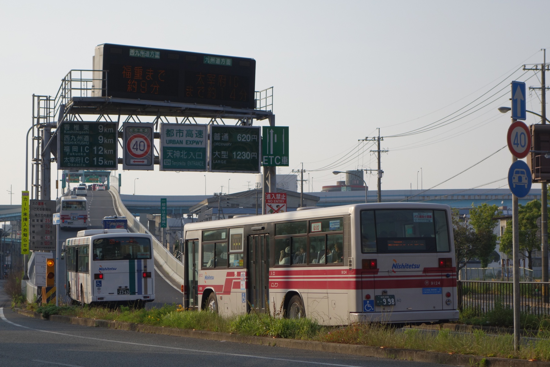 主に西部方面への路線バスと、九州各地へ向かう高速バスが駆け上がっていく。