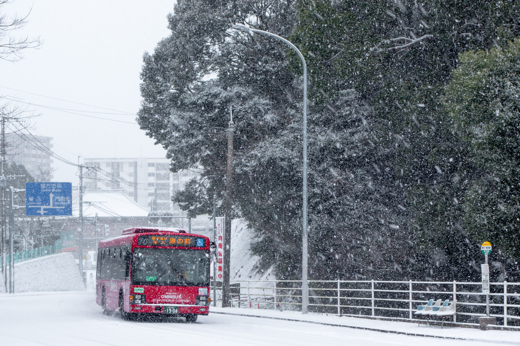 この日の直方市内は、西鉄バスは終日運休。