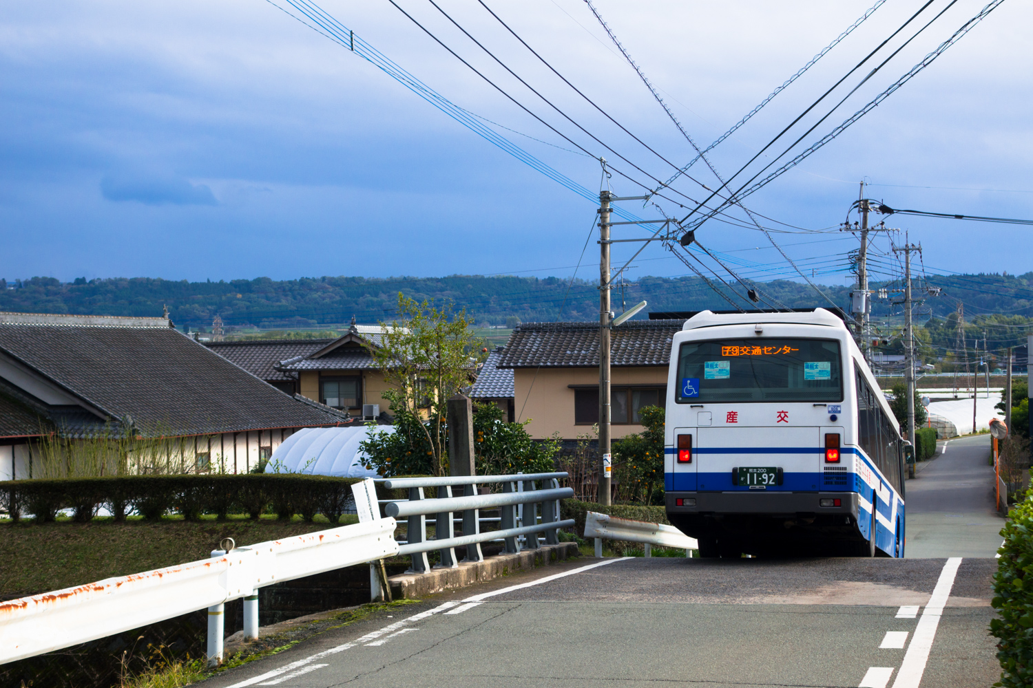 菊陽台病院を出たバスは、狭小な宅地の道を駆け下り、津留の田園地帯へ。